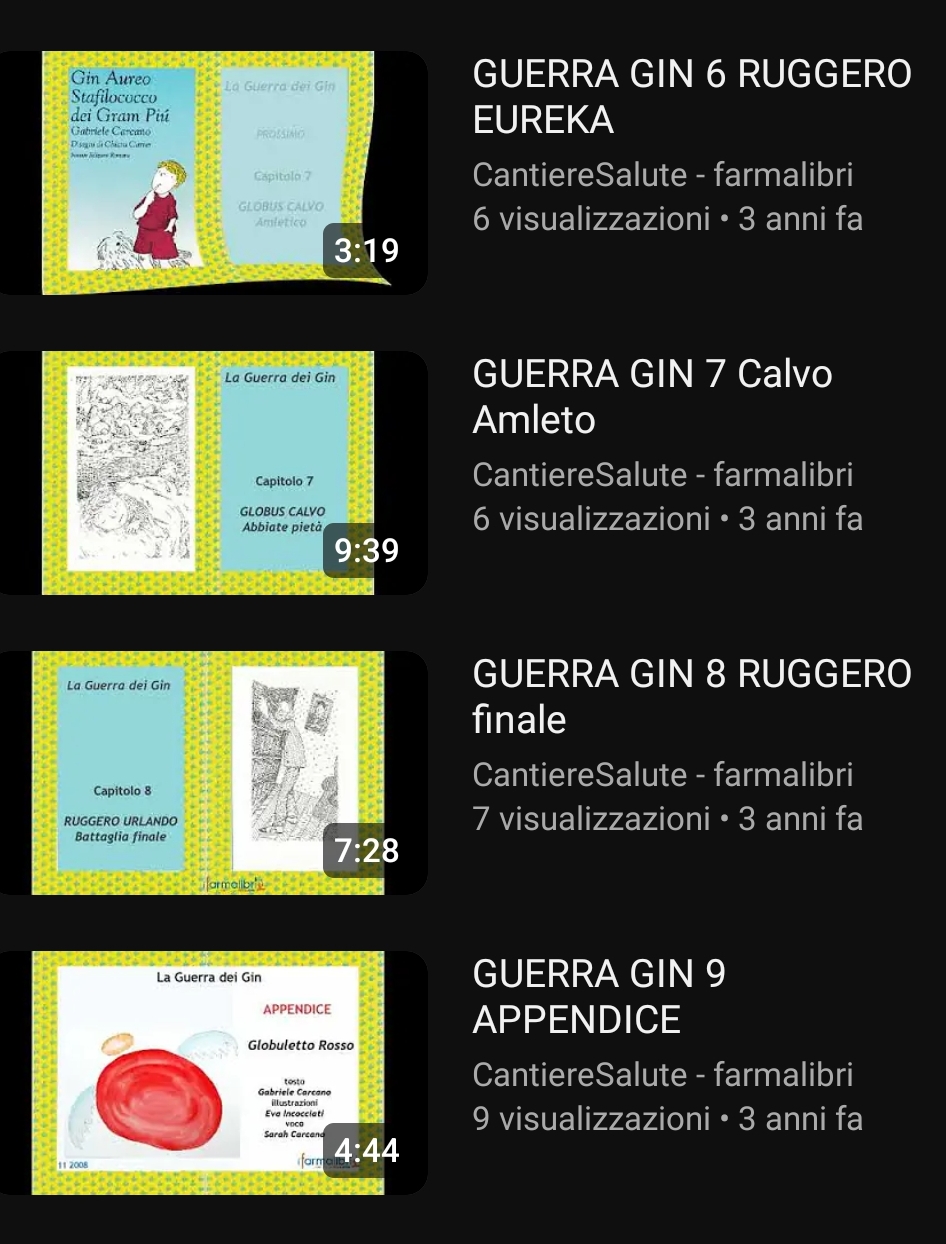 Tratto da Gin Aureo Stafilococco (NER 1991) racconta la guerra tra le cellule di un bambino e un batterio virulento vista con gli occhi e le parole delle stesse cellule protagoniste: Macro Leukos, Macrina Blanca, Linfos Bunder, Ruggero Urlano, Cerebella e l'amletico Globus Calvo. Nato come testo di educazione sanitaria per ragazzi in questo Video Podcast del maggio 2021, in piena pandemia, si rivolge agli adulti in una spietata critica filosofica, sociale e medica da parte del nostro maltrattato sistema immunitario Testo di Gabriele Carcano, disegni di Chiara Carrer,